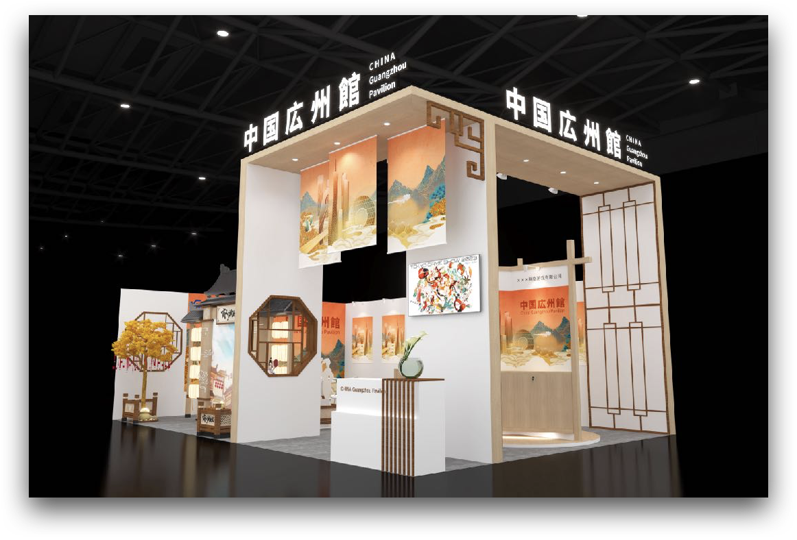 今回のブースデザインは、中国広州館のテーマである「現代性と東方美学の融合」を具現化することを最優先としました。弊社は、中国文化の持つ荘厳な美しさを、洗練された現代的なミニマルデザインと組み合わせる特別なデザインを提案。伝統的なモチーフをモダンに再解釈した装飾や、視覚的なインパクトを与えるライティングを施し、多くの来場者の目を惹きつけました。