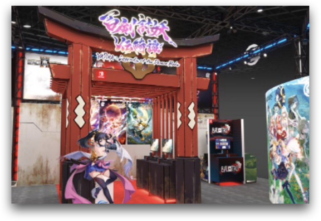 『百剣討妖伝綺譚』のブース設計の核となったのは、世界観を具現化した巨大な「赤鳥居」のシンボリックなエントランスです。伝統的な和のモチーフである鳥居を大胆に配置し、作品世界への没入感を演出。会場内でも圧倒的な存在感を放つフォトジェニックなランドマークとなりました。