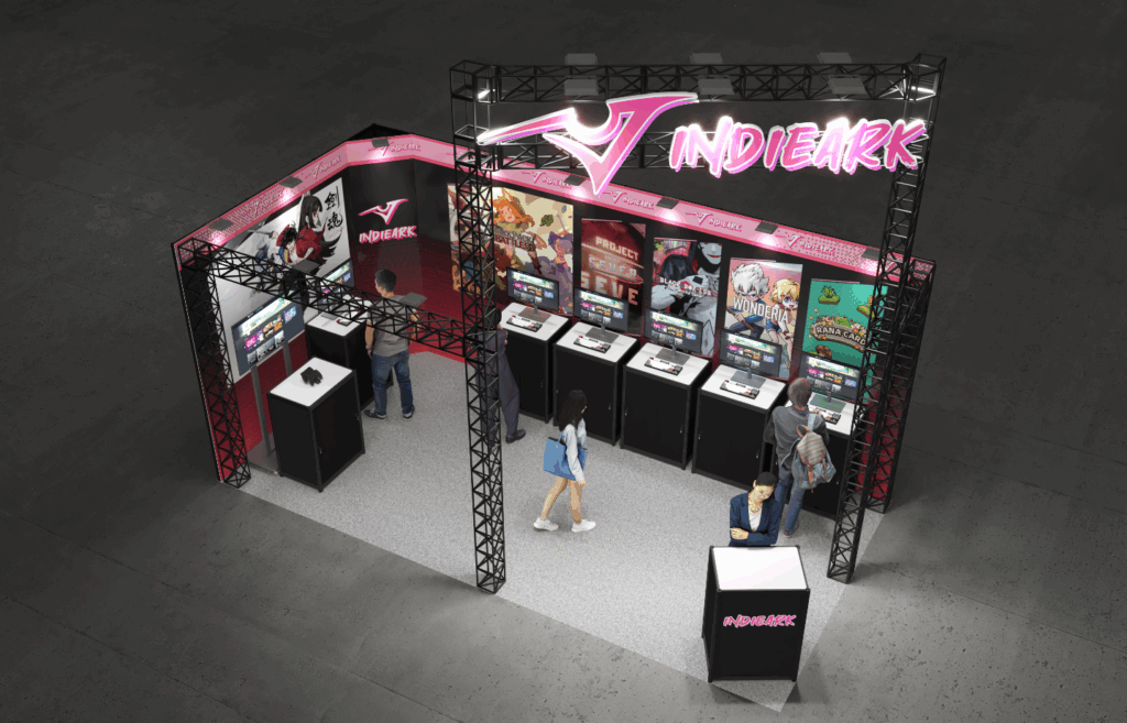 ブースのデザインコンセプトは「おしゃれなピンク空間」。ショッキングピンクという色使いは、インディーゲーム(Indie Ark)が持つ若さ、革新性、そして情熱といったイメージを強く表現しており、ブランドの個性を際立たせています。